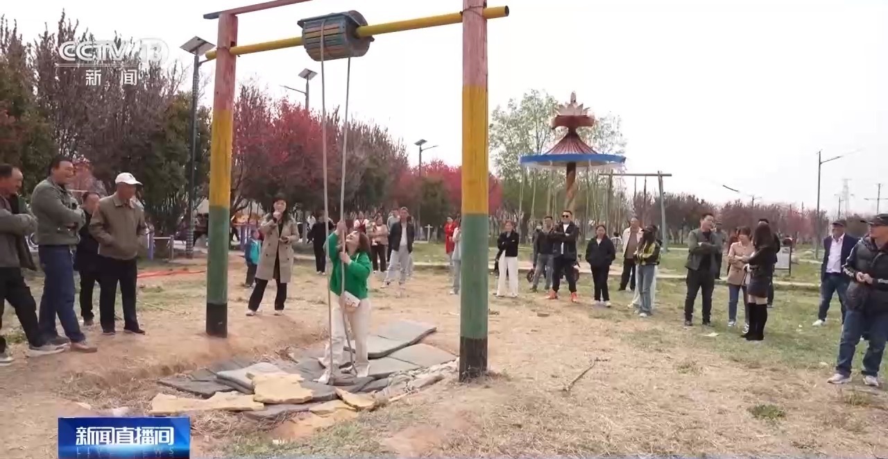 清明来临,陕西省华阴市司家村举行独特的秋千古会,18种古法秋千热闹登场,形似纺车的线轮秋、旋转木马的八卦秋、两人同荡的天平秋等吸引游客争相“闯关”。