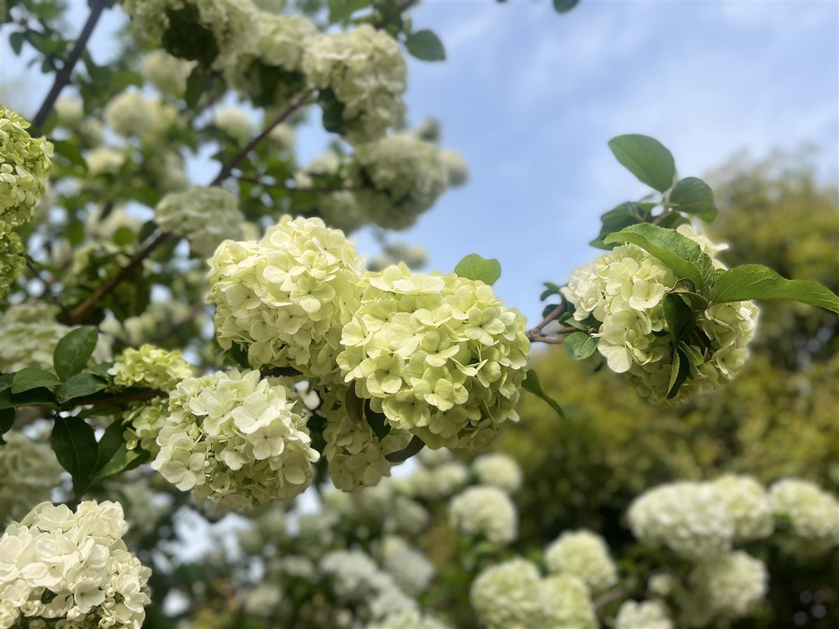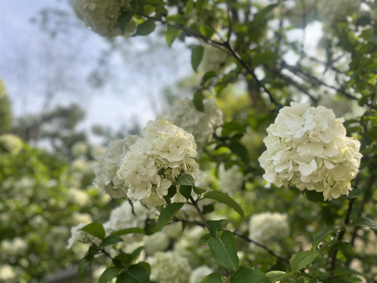 走进和平公园月季园东侧,有一片由木绣球与悬铃木交织的秘境。两株绣球树木高约4米,枝头垂落的球状花序直径达20厘米,宛如“空中云朵”。园内另有数十株新栽绣球沿北区步道分布,低矮花枝与长椅、罗马柱景观长廊相映成趣,游客可直接触摸花瓣,感受“春日绒球”的触感。园艺专家介绍,木本绣球原产中国,喜温暖湿润环境,武汉因气候适宜成为其重要分布区,和平公园通过微地形改造与精准养护,让绣球花量较往年增长40%。