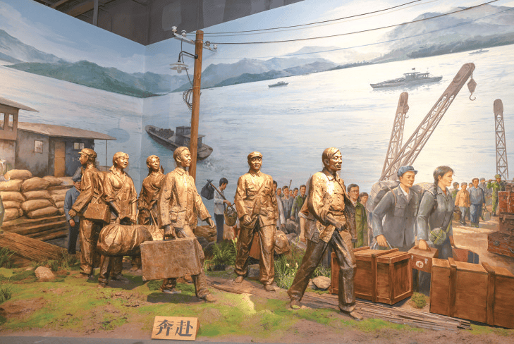 第二汽车制造厂(东风汽车集团有限公司前身)在十堰奠基来自四面八方的创业者们坚定“打汽车工业翻身仗”的信念,凭借“马灯精神”,以干打垒、芦席棚为宿,克服了道路涉水及桥梁受限等重重困难,通过人拉肩扛,建起了汽车制造厂。