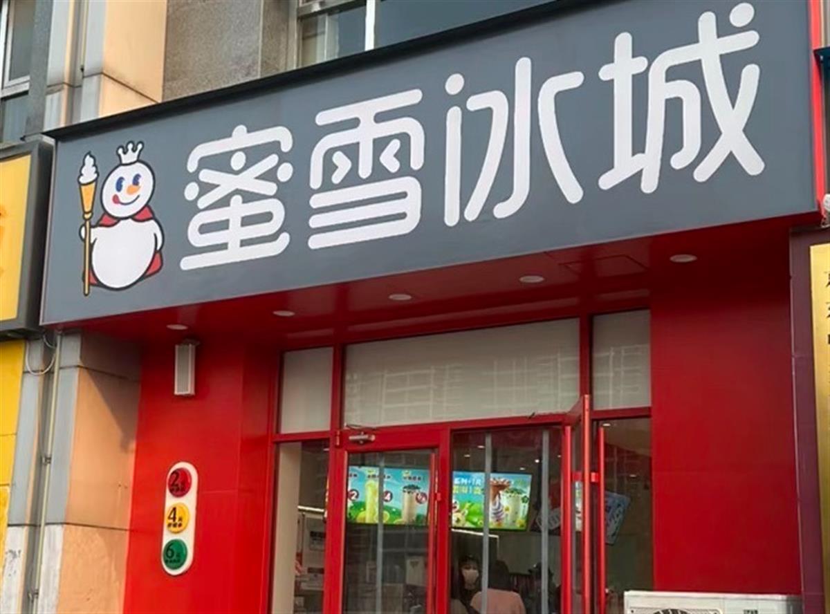 网友晒出了一张“黑灰色”底的蜜雪冰城门头牌匾(网络截图)