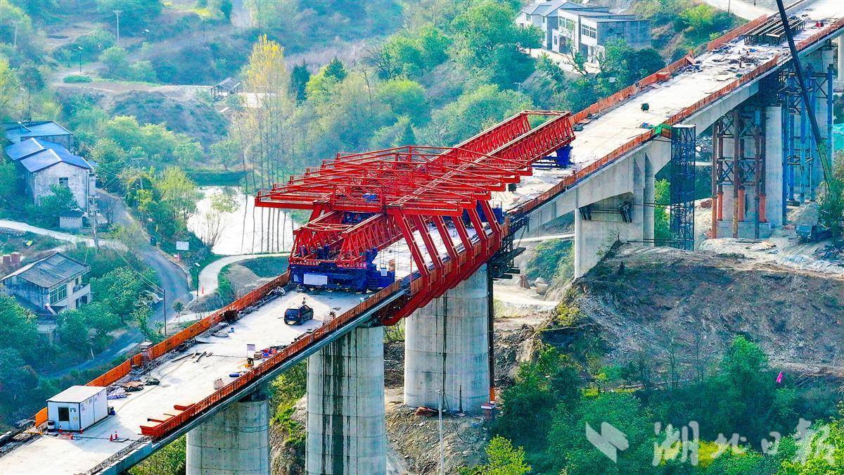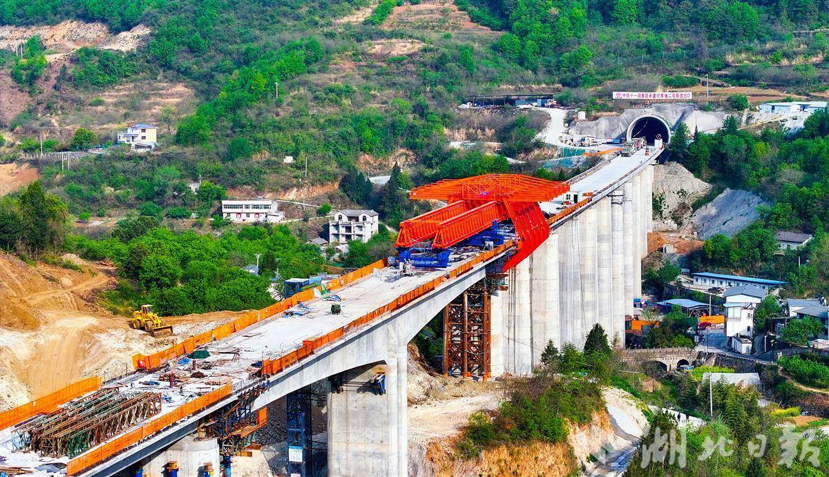 4月6日,十堰市郧阳区茶店镇樱桃沟村,航拍已合龙的西十高铁樱桃沟特大桥。