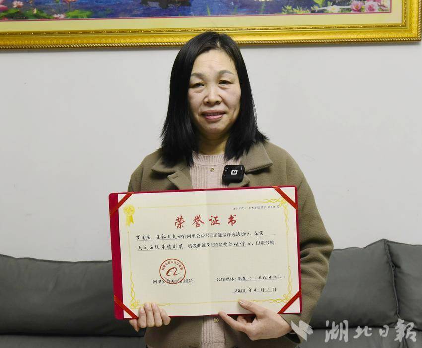这是阿里公益天天正能量联合荆楚网(湖北日报网)为罗贵庆、王永久夫妇颁发的正能量特别奖。