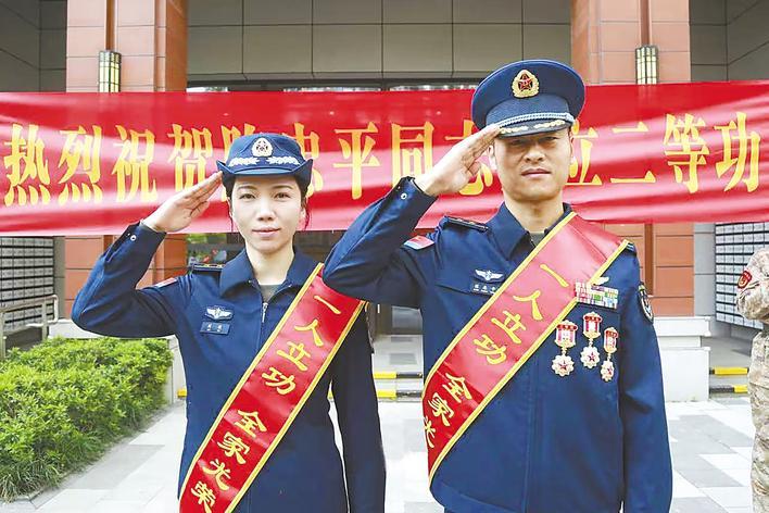 38岁的陈忠平来自江苏,现为空军某飞行大队副大队长,2024年因年度工作突出荣立战备训练二等功。此前,他曾两次荣立个人三等功,一次个人二等功。妻子刘欣是土生土长的青山人,是我国第一批歼击机女飞行员,曾参加国庆60周年阅兵活动,也曾荣立个人三等功。这对飞行员伉俪成就了比翼齐飞的一段佳话,也诠释出新时代军人的家国情怀。