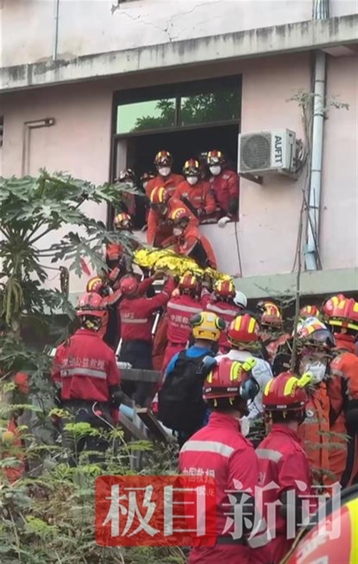 31日凌晨5时37分,在天空公寓北侧的作业点,中国救援队和中国公羊救援队成功救出一名5岁的女孩。40多分钟后,他们又救出一名孕妇。50分钟后,又有一名29岁的女子获救!