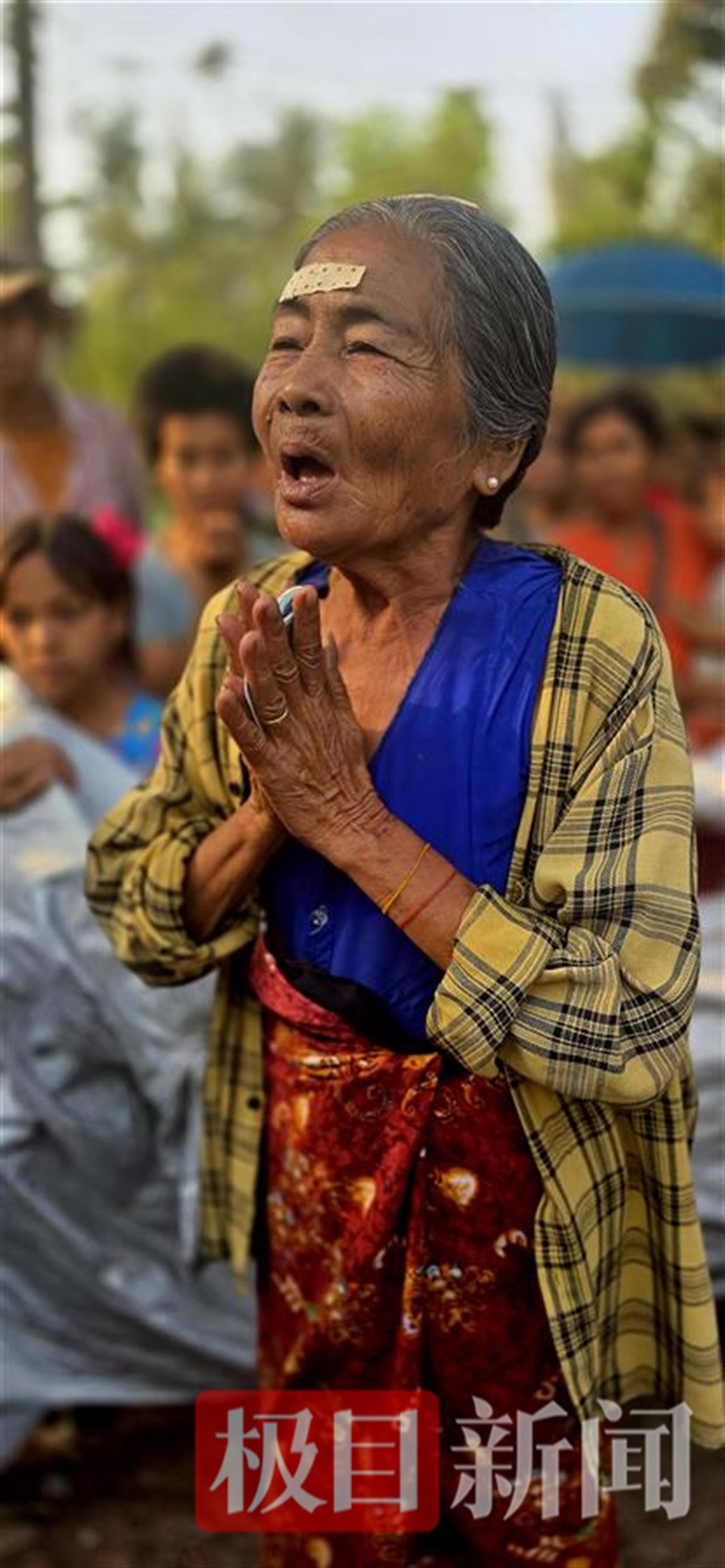 4月3日,一名受助的缅甸老人对极目新闻记者和志愿者表示感谢(极目新闻记者 满达 摄)