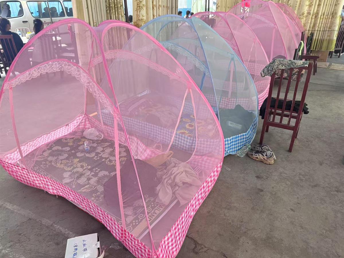 我们在曼德勒的营地,这是由华人同胞送来的凉席和蚊帐