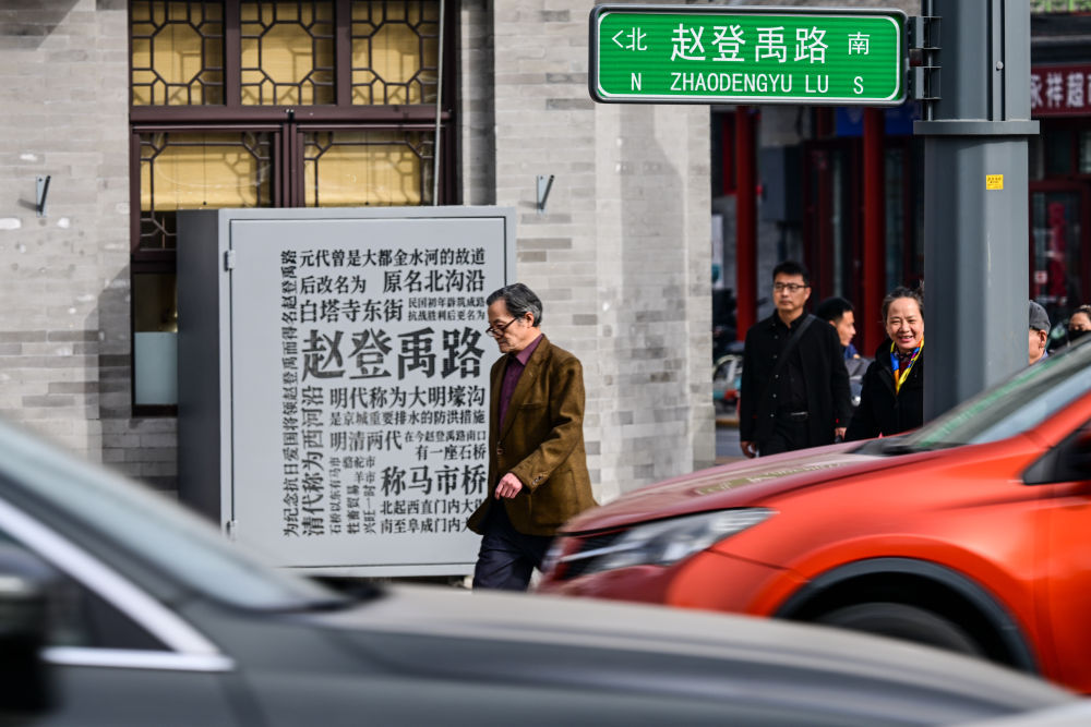 市民行走在北京市西城区赵登禹路(3月26日摄)。