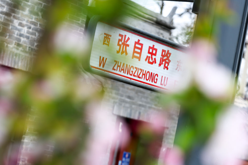 鲜花掩映下的北京市东城区张自忠路(3月28日摄)。