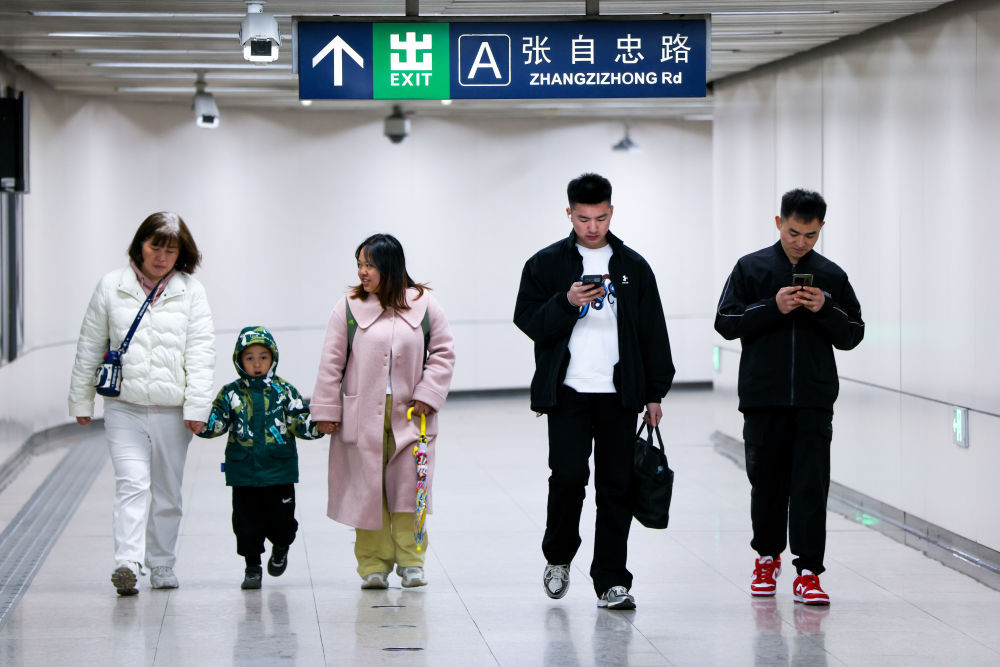 乘客行走在北京地铁张自忠路站内(3月28日摄)。