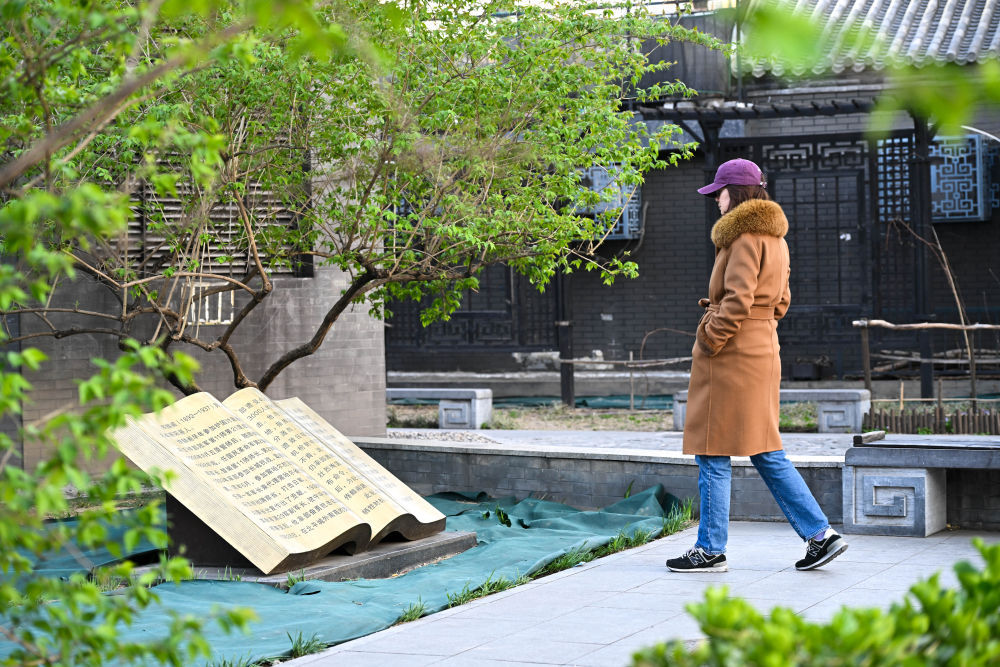 在北京市西城区赵登禹路,市民从赵登禹将军英雄事迹主题浮雕前走过(3月26日摄)。