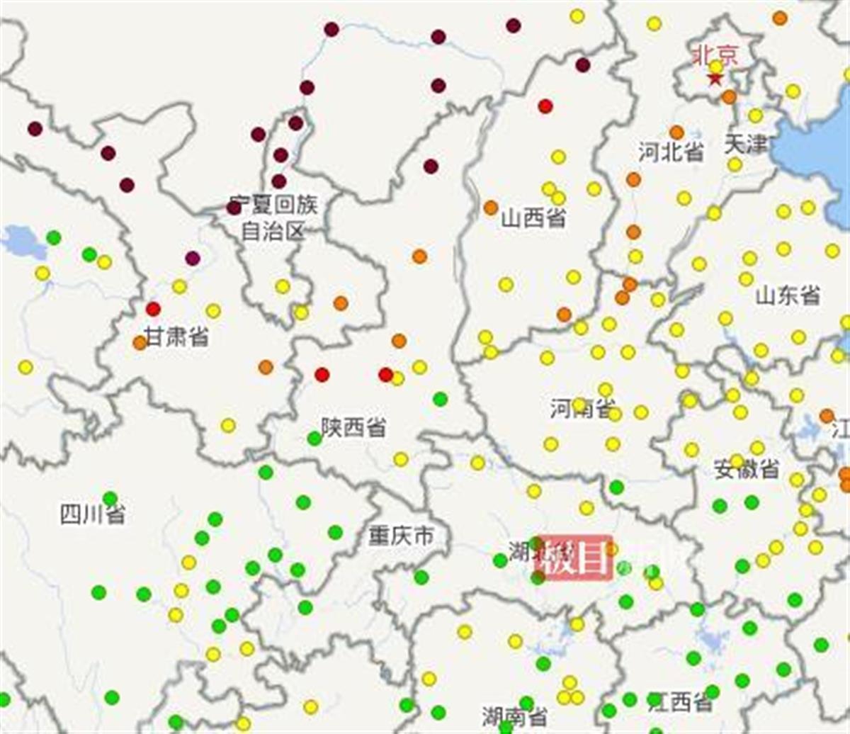 湖北省生态环境厅武汉生态环境监测中心消息,4月11日白天武汉有中到大雨,地面以偏东风1到2级为主,空气质量由良转为优。11日截至16时,城区空气质量指数为65,良,首要污染物为PM10。受沙尘天气影响,目前陕西、宁夏、内蒙古、甘肃等地部分城市为严重污染,首要污染物为PM10。省内城市空气质量均为优良,首要污染物为PM2.5或PM10。