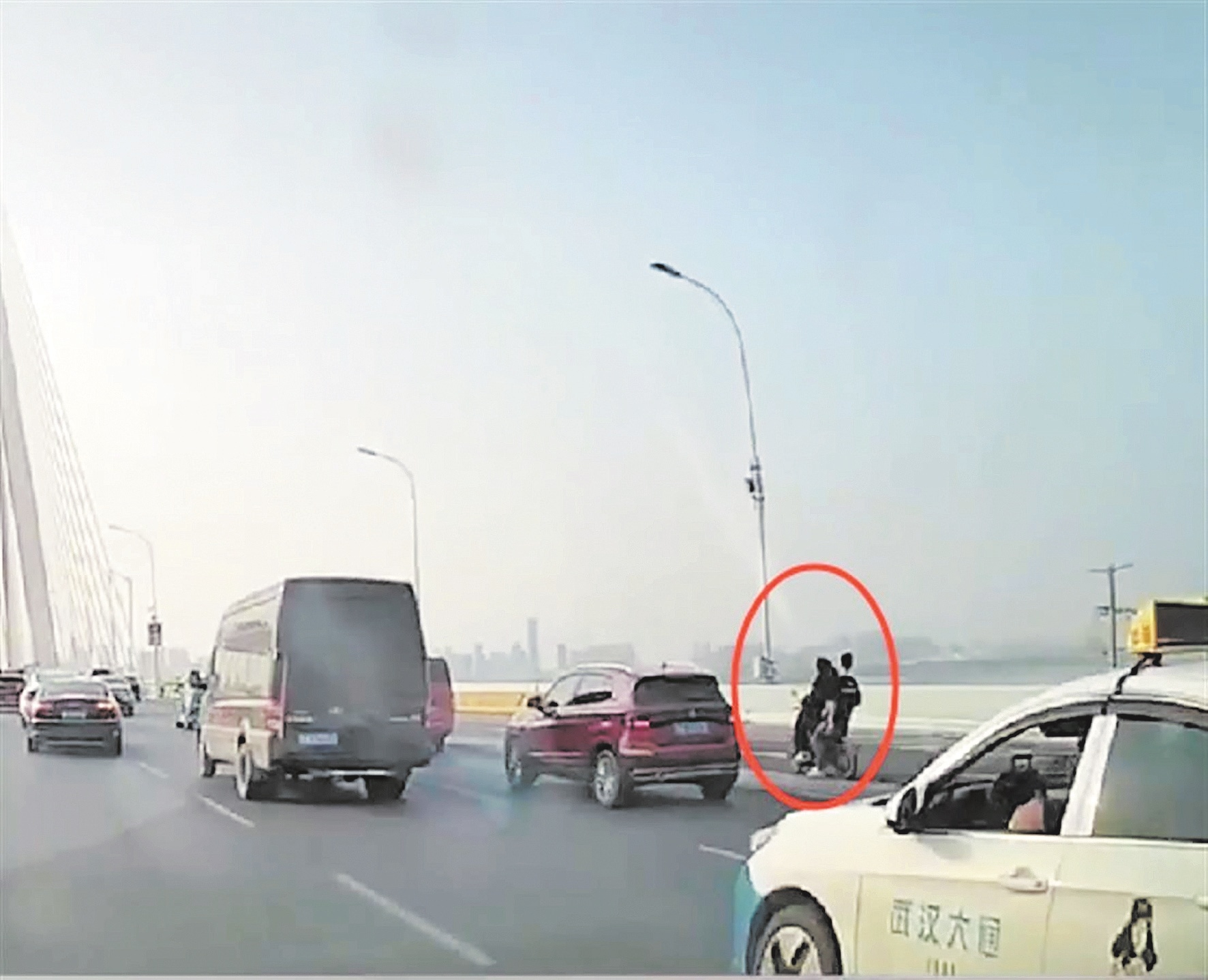 楚天都市报极目新闻讯(通讯员刘骙 王郁蒙)近日,在武汉二七长江大桥上发生惊险一幕:两小伙骑着电动车贸然闯入桥隧,导致不慎摔倒,并与旁边一小车发生擦碰倒地。千钧一发之际,青山区交通大队指挥室民警刘波通过监控视频捕捉到这一险情,立即调度桥面快骑队员前往现场救援。目前,事故及责任认定已结束,两小伙无大碍,但涉嫌违反交通法规。