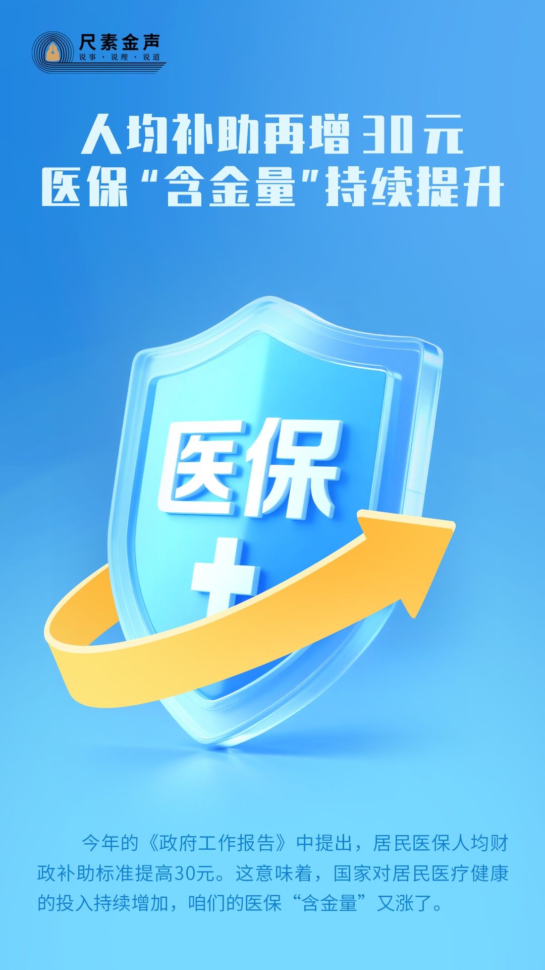 今年的《政府工作报告》中提出,居民医保人均财政补助标准提高30元。这意味着,国家对居民医疗健康的投入持续增加,咱们的医保“含金量”又涨了。