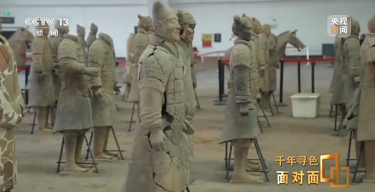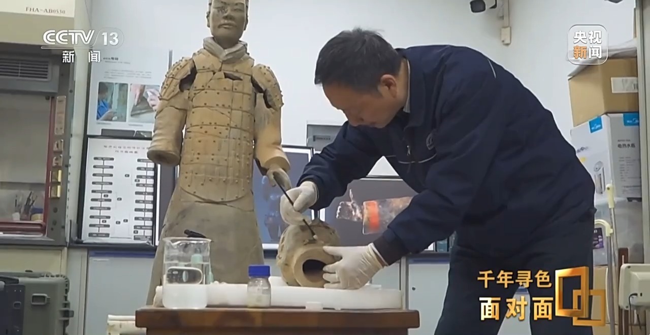 在陕西秦始皇帝陵博物院彩绘文物修复室,经过三年修复,一件原本已经碎成了一百多块的秦俑,重现了两千多年前秦国军吏的样貌。