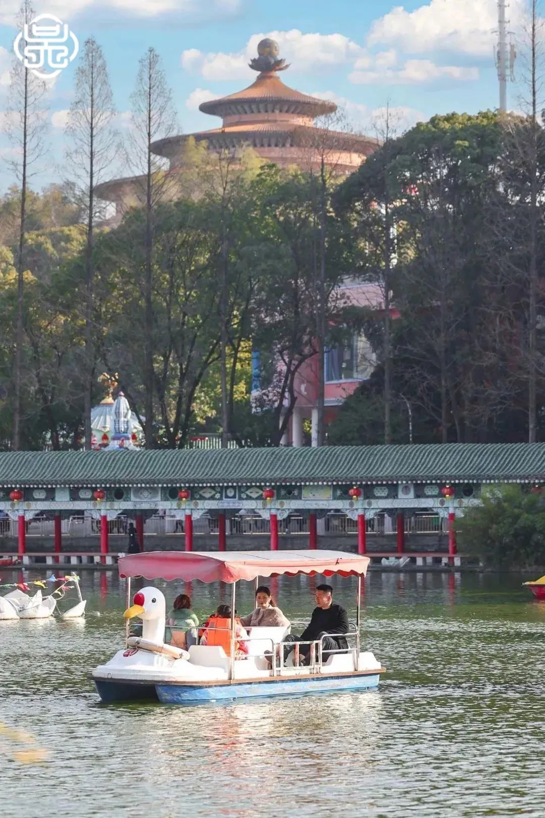 莲花山风景区坐拥三面环湖的绝佳位置,其古韵天成的建筑群与山水相映成趣,飞檐斗拱间尽显东方美学。