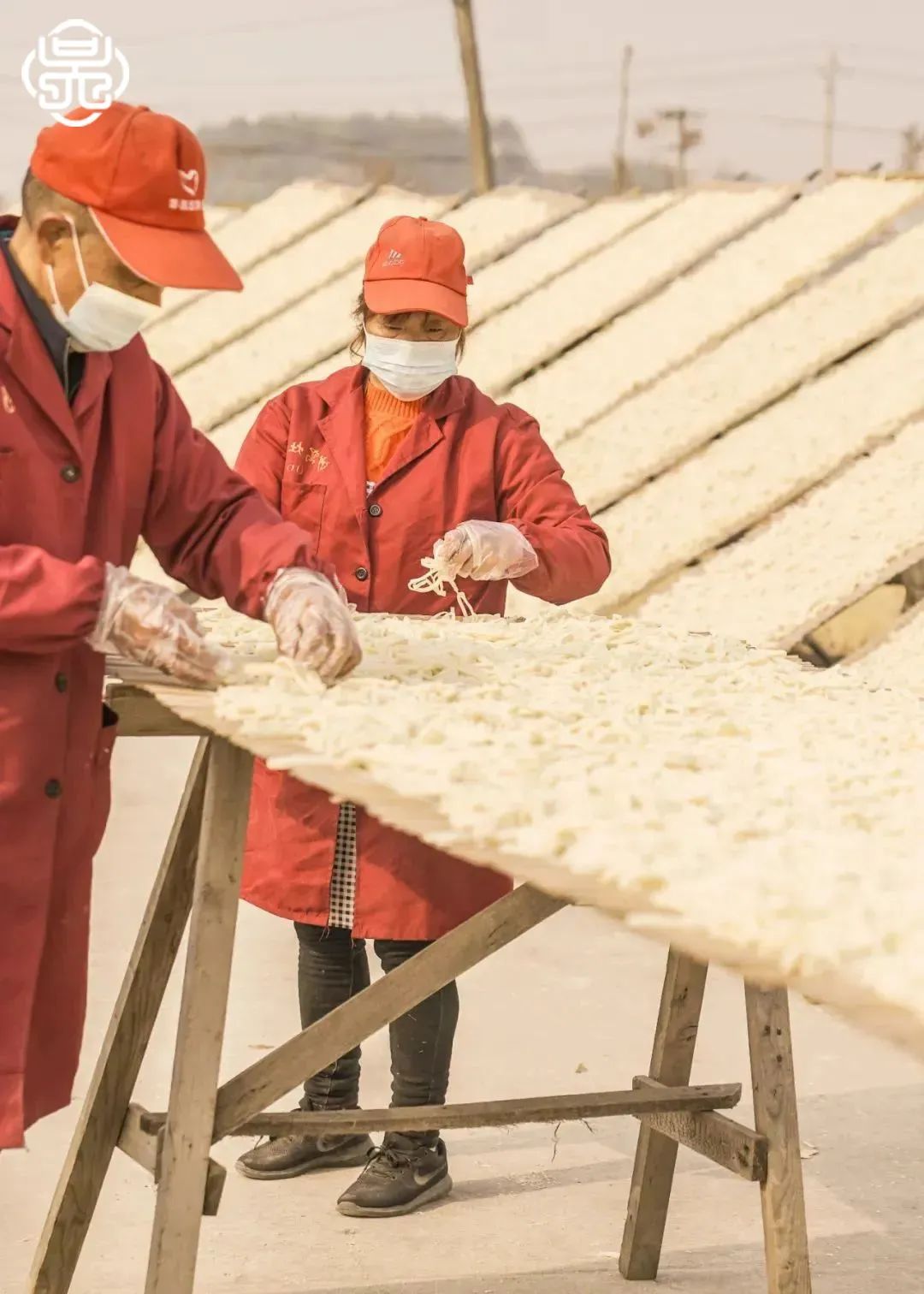 用本地晚稻米和绿豆泡发后磨成米浆,摊成薄薄一张饼,晒干切丝就成了这带着阳光味的美食。