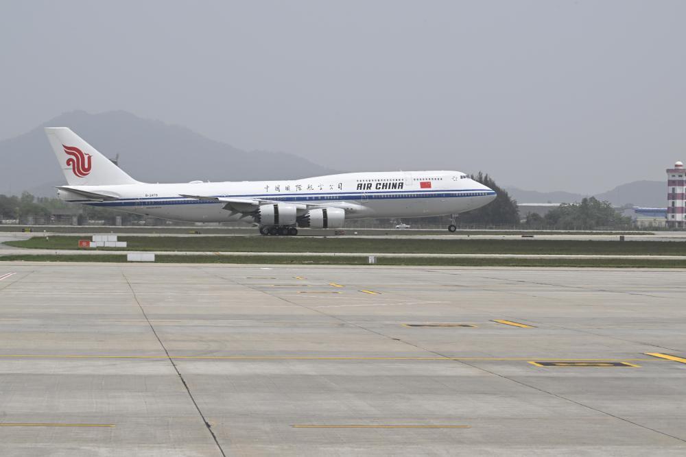 新华图讯|习近平乘坐的专机降落越南河内内排国际机场