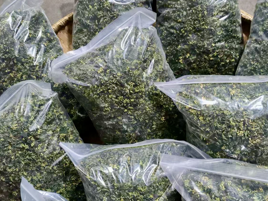 “这珍珠花可是我们村的宝贝!新鲜的珍珠花每4斤晒干成1斤,干花每斤能卖到100元至120元”种植户陈大姐一边采摘一边高兴地说道,“前段时间光照充足,珍珠花晾晒得很不错!珍珠花炒腊肉、炖珍珠花煲都非常好吃,而且还能降血压,很多人都爱吃。前两年有游客路过,对我晒的珍珠花感到好奇,我向他介绍了一番,他当场买了15斤,这不,前段时间又让我给他发快递呢!靠着种植珍珠花,我们家的收入有了很大提升,日子也越过越红火。”据悉,中秋村的珍珠花因其品质优良,在市场上供不应求,除了老顾客会提前预订,还吸引了众多外地游客前来选购。