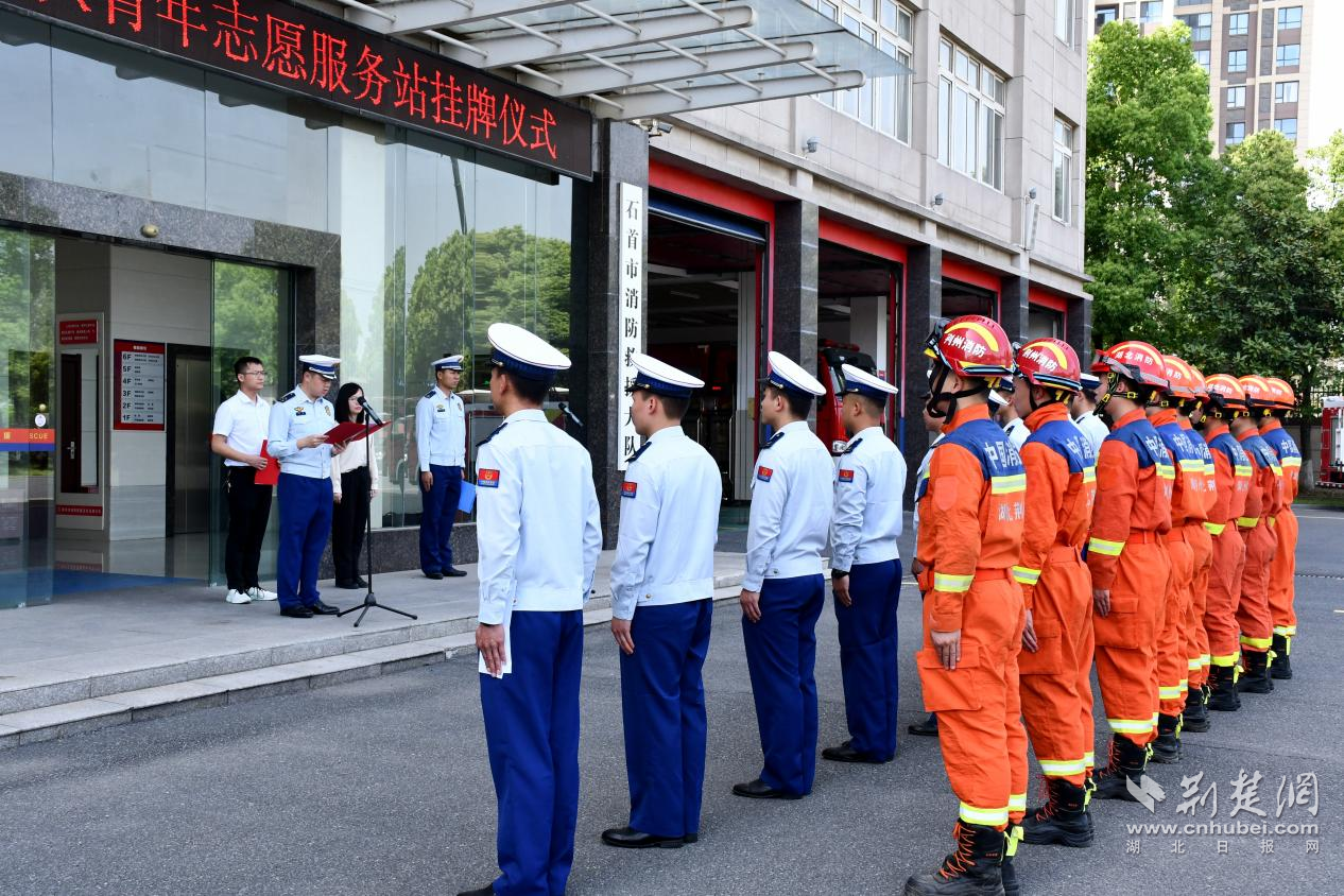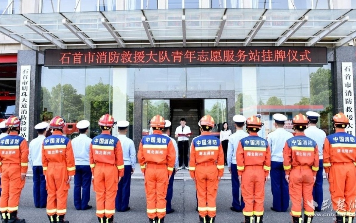 荆楚网(湖北日报网)讯(通讯员 魏亚玲)4月14日,石首市消防救援大队联合团市委举行石首消防青年志愿服务站挂牌仪式。共青团石首市团委书记杨炳、团市委工作人员及石首大队消防员代表参加活动。