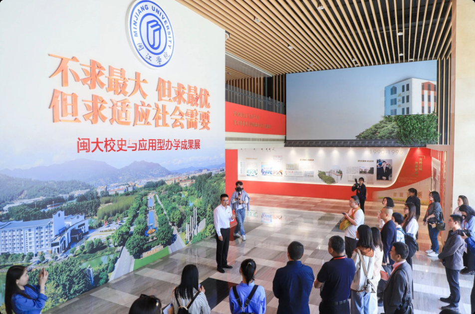 4月15日下午,2025年“主流媒体福州大学城巡礼”活动走进闽江学院,主流媒体记者来到展厅,在光影斑斓间感受该校“思政+”教育的独特风采。