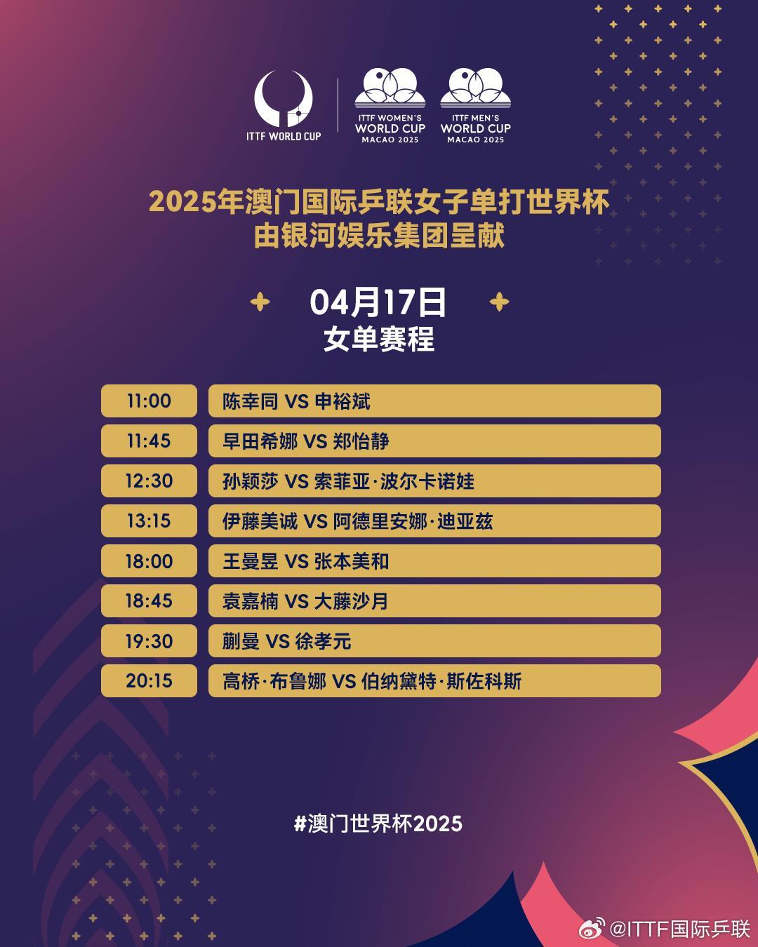 北京时间4月17日,2025国际乒联单打世界杯在中国澳门继续进行。在女单1/8决赛中,王曼昱4-3战胜日本选手张本美和,单局比分:8-11、5-11、11-7、12-14、11-7、11-7、12-10。王曼昱顶住了压力,逆风翻盘!
