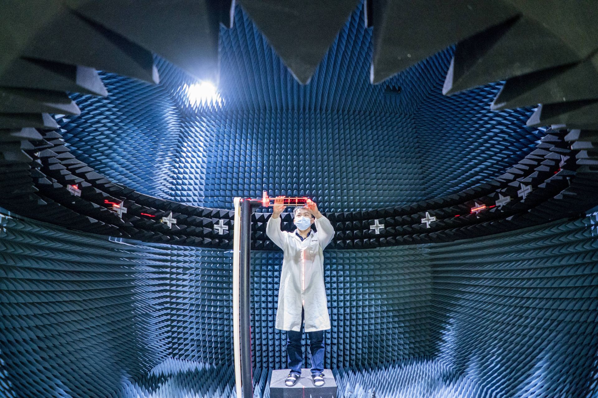 位于光谷的联想武汉产业基地内,研发人员在进行手机天线射频信号测试。(湖北日报全媒记者 魏铼 摄)