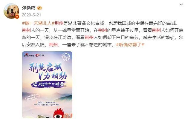 作为湖北荆州人,张新成也曾多次推荐家乡荆州,为荆州打call,并向大家发出邀请:“欢迎你们来我的家乡——荆州。”
