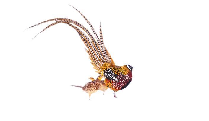 约莫过了一个多小时,一只尾羽长达1.5米左右的雄性白冠长尾雉如约而至。只见它张开翅膀,围着雌鸟抖动艳丽的尾羽,以求芳心。“不虚此行,这个画面千金难买。”来自香港网名为Lowong的资深观鸟人捕捉到这个优美的瞬间,兴奋不已。