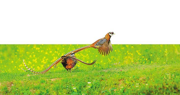 白冠长尾雉求偶场景。 (湖北日报通讯员 张汉斯 摄)