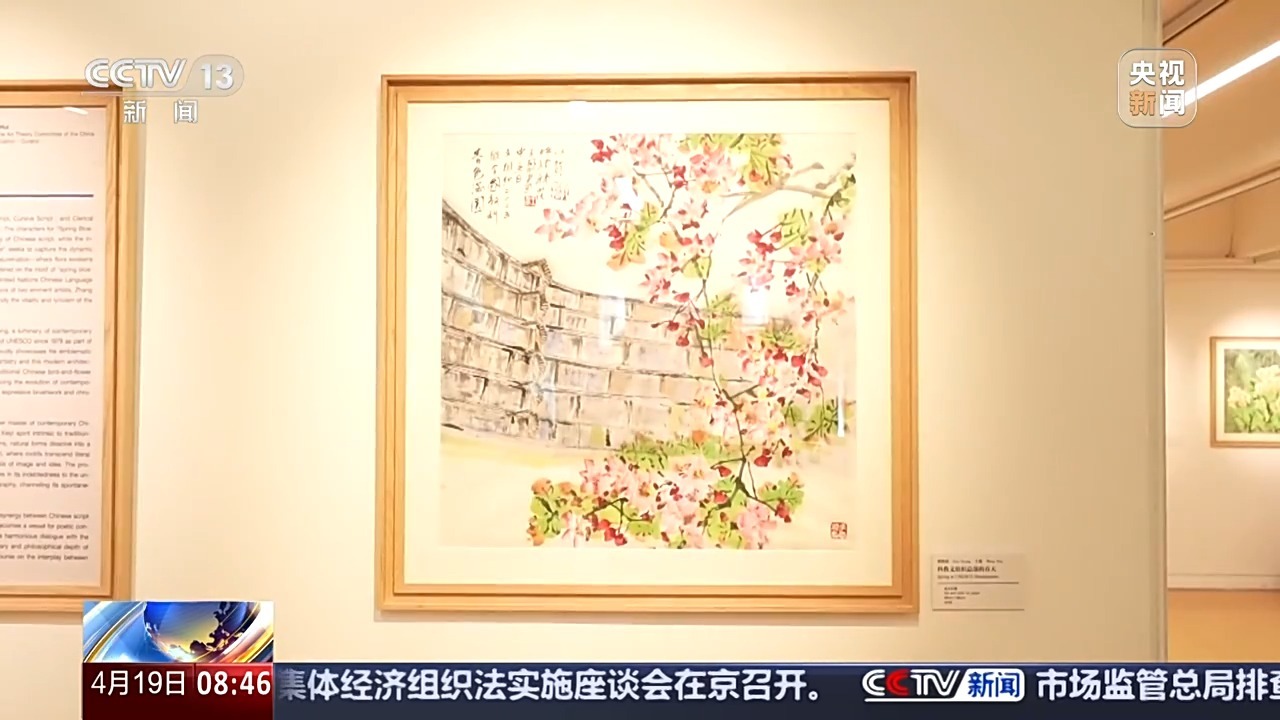 活动现场特别呈现了“春花烂漫”主题书画展。展览以中国传统书法和绘画为核心,将汉字象形构造与写意美学巧妙融合。
