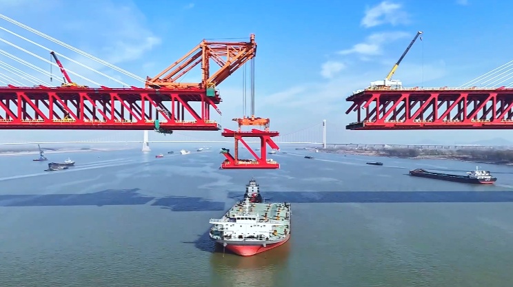 标志着马鞍山长江公铁大桥顺利合龙
