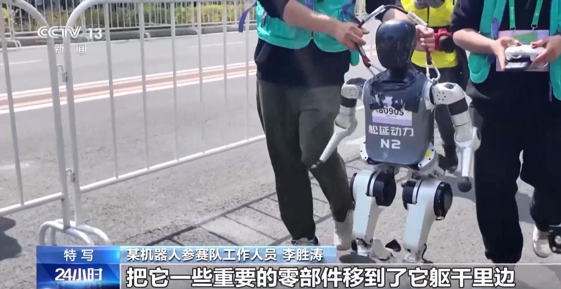某机器人参赛队工作人员 李胜涛:我们实际上已经把它重要的零部件移到了躯干里边,主要还是因为过热的问题。所以现在头摔掉,基本上影响不是很大,我们后半程全程给它降温了。计划继续优化产品,把这个机器人做得更加稳固一点。