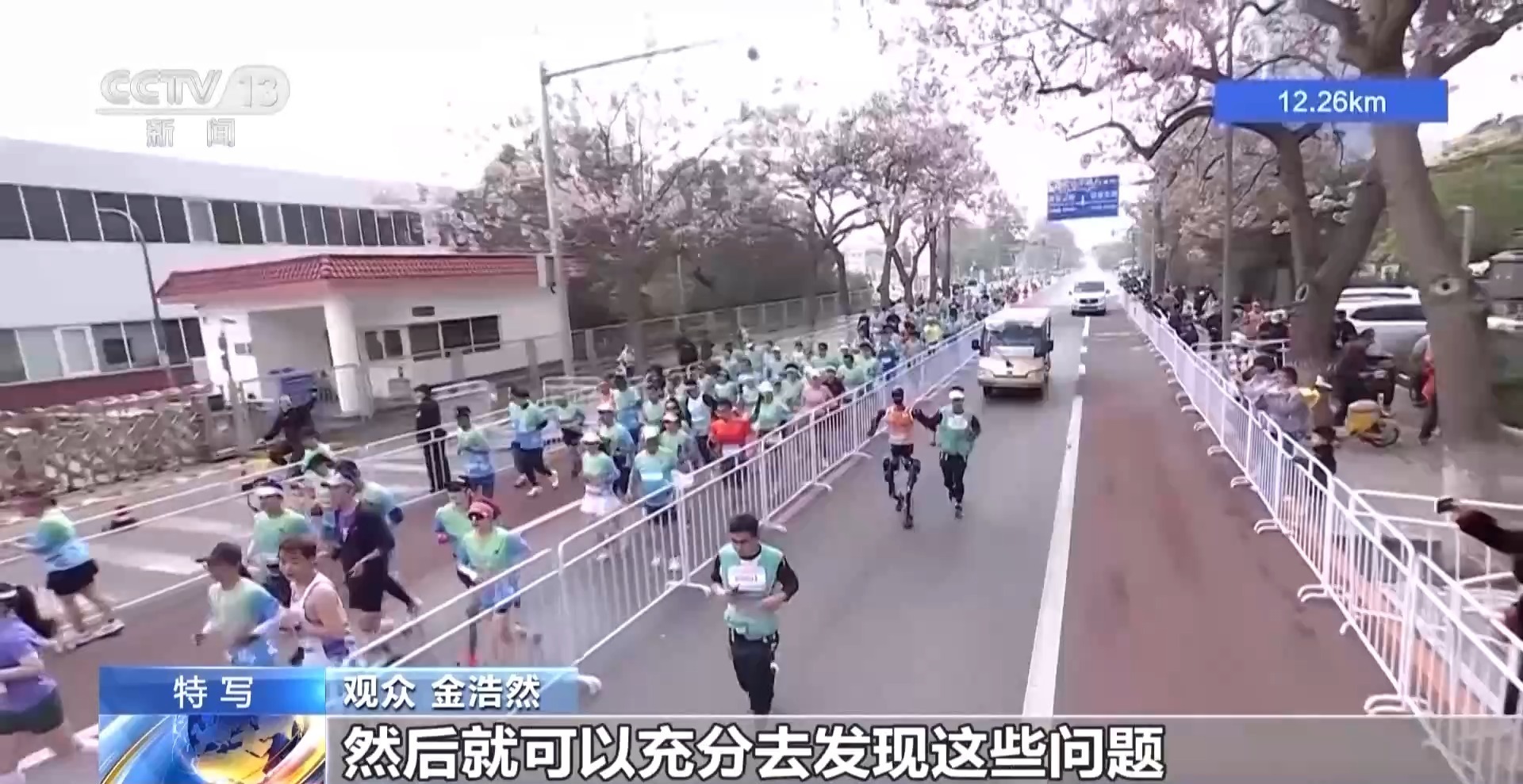 观众 金浩然:很多人在聊,从起点那边出现的一些小问题,机器人换电池或者是摔倒的这些问题。如果要是在实验室里面去测试,可能这些问题不会充分暴露出来,但是如果要是我们在像这样的一个大型的活动赛事,在公开的这种极限场景下,就可以充分去发现这些问题,进一步提升自己的水平。