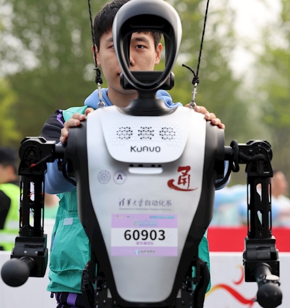 4月19日,全球首次“人机共跑”半程马拉松在北京亦庄开跑,20支人形机器人队伍和人类选手同时出发。最终,天工队选手天工Ultra以2小时40分42秒的成绩夺冠。新华社发