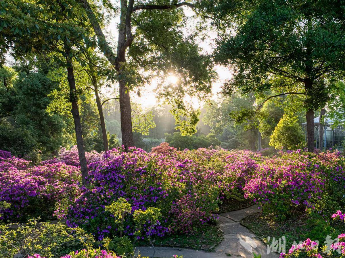 数以万计的杜鹃植株在武汉植物园杜鹃园舒展画卷,在坡地起伏处营造出亚高山杜鹃群落,文艺感十足。蜿蜒的小径被花丛簇拥,时而如烈焰燃烧的红霞漫天,时而似淡彩晕染的粉雾缭绕。更有罕见的绿白色杜鹃点缀其间,清雅如诗。