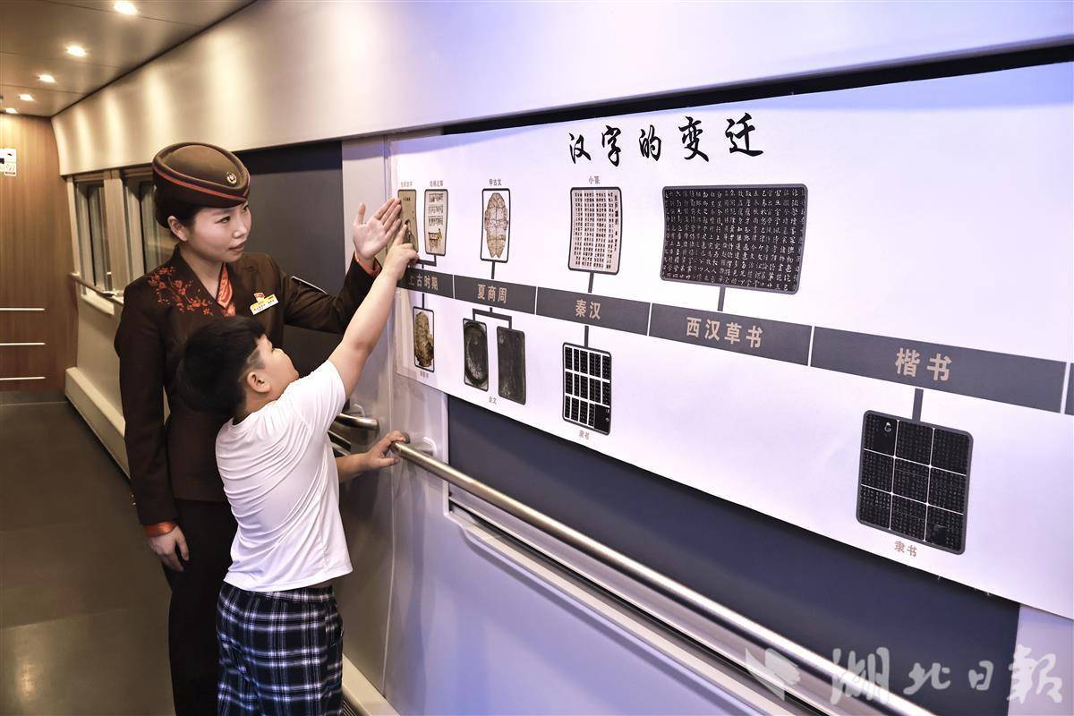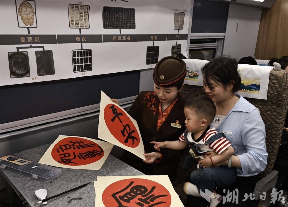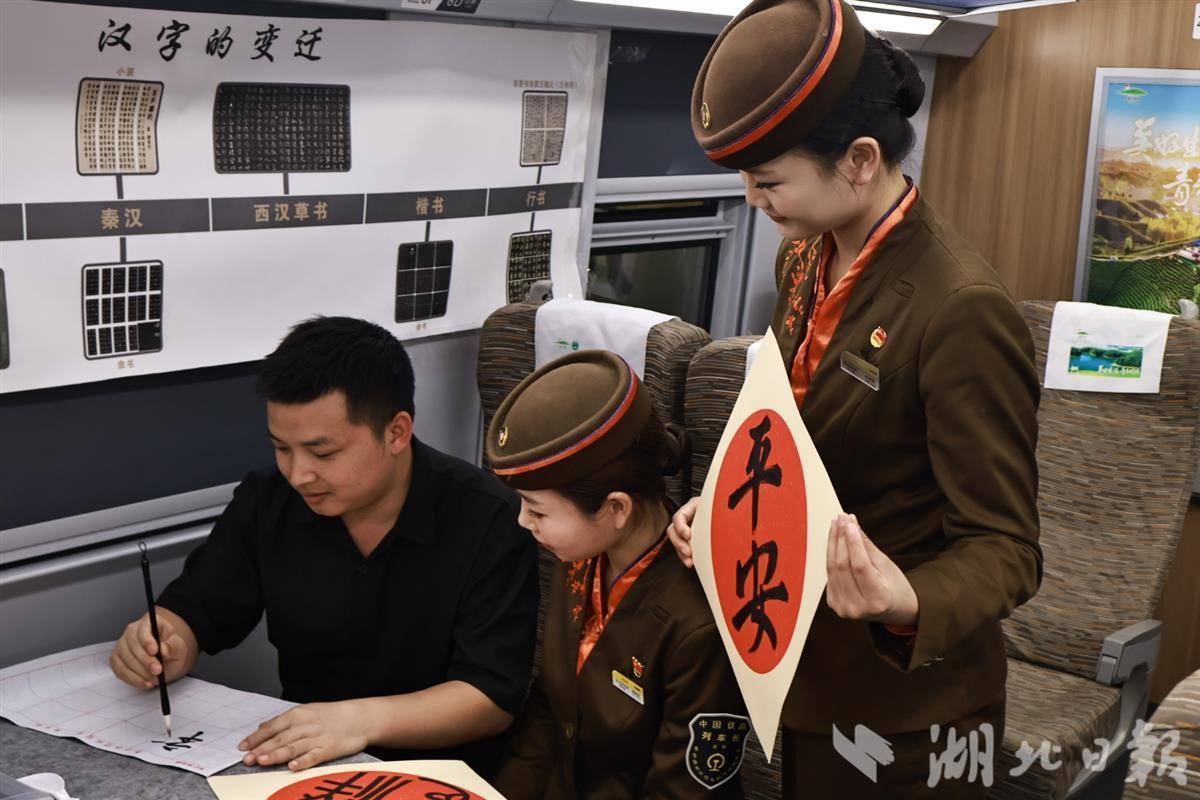 此次“列车世界中文日”活动,不仅丰富了乘客的旅途生活,更通过对汉字变迁的解读和毛笔字书写体验,传播了中华优秀传统文化,为文化的传承与交流搭建了流动的平台 。(湖北日报通讯员 闫思思 杨家乐 摄)