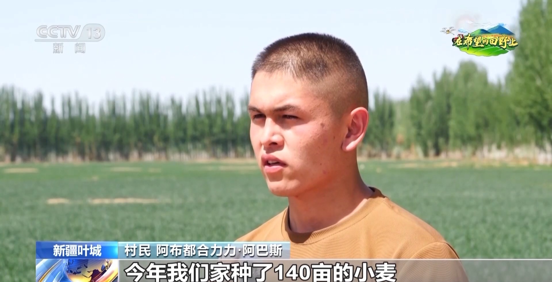 村民 阿布都合力力·阿巴斯:今年我们家种了140亩的小麦,请了村合作社三台无人机同时打药,一个小时就能解决,又便宜又省事,效果又好。