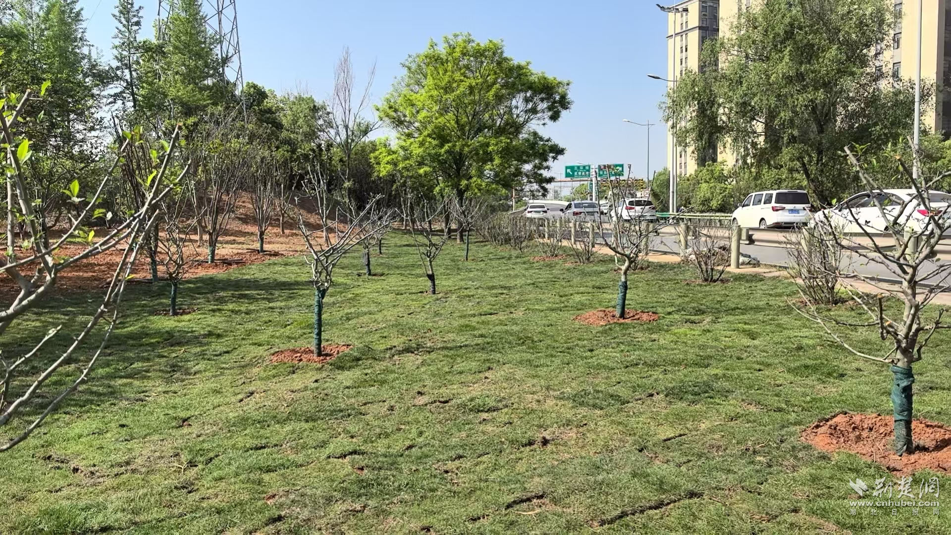 离青化立交不远的武汉市洪山区友谊大道百骏体育公园铁路沿线经过高强度整治与精细化修复,也蜕变为整洁有序的绿草地。该铁路沿线因毗邻居民区和交通干道,存在黄土裸露、杂草丛生问题突出。去年底,洪山区城管执法局联合和平街道综合执法中心开展环境综合整治,累计投入170人次作业力量,调配5台推土机、4台挖机及16台垃圾清运车,清运垃圾超100吨。在完成垃圾清零后,工作人员对地块进行全面推平并铺设草坪。经过一整个春天的生长,目前,草坪已全部存活并生长茂盛,和平街道综合执法中心已将该点位纳入重点日常巡查范围。
