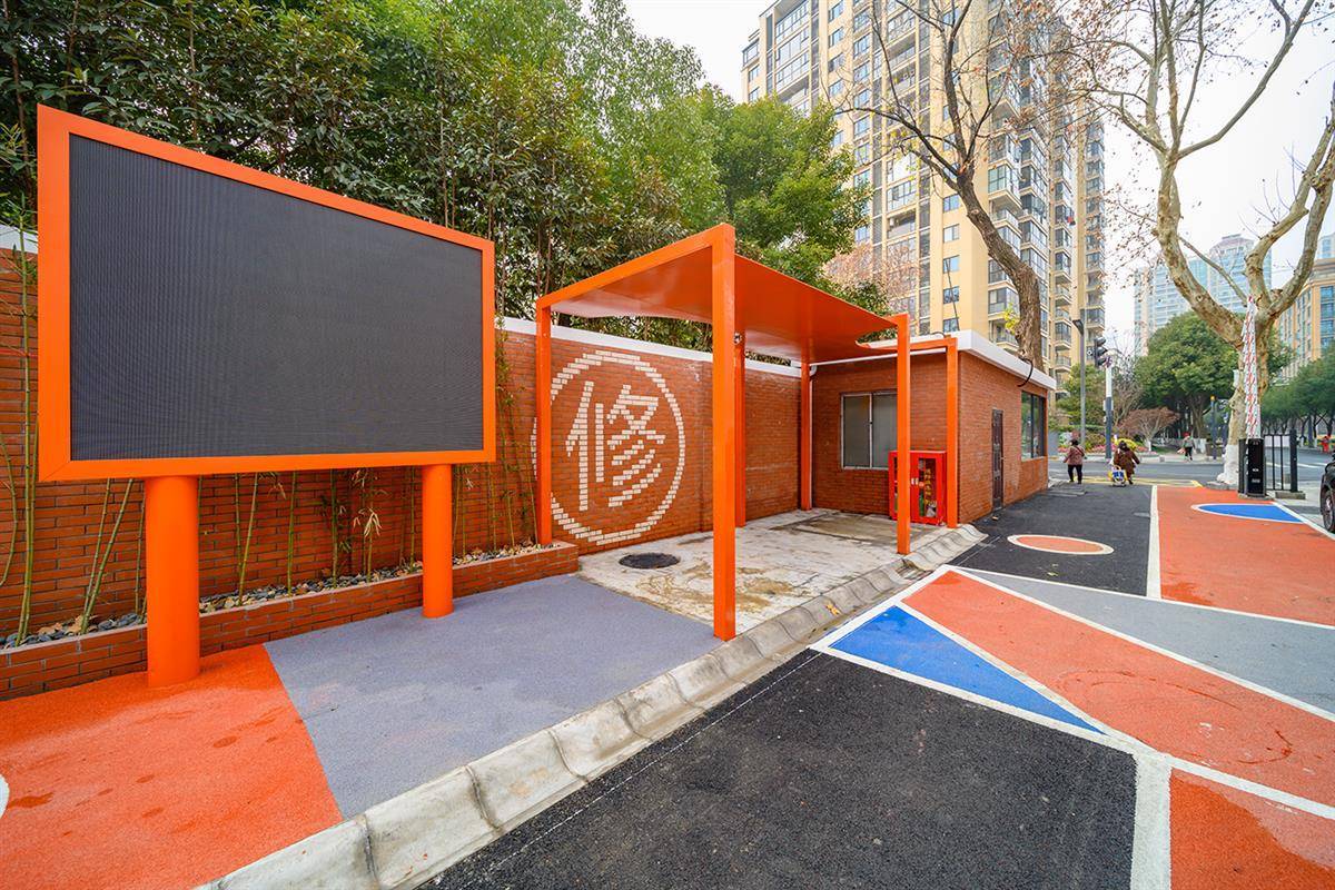 小区最里端有块小空地,被堆成了“垃圾山”。项目团队清走垃圾,改成消防回车场地,平时又可兼作为羽毛球场;一条环小区的橘色步道也随之成型,小区的活动空间一下子被打开了。“步道走一趟大概一刻钟,正适合我们老年人。”居民刘大爷指着脚下的步道说,“这都特意垫高了,下雨也不会积水。”