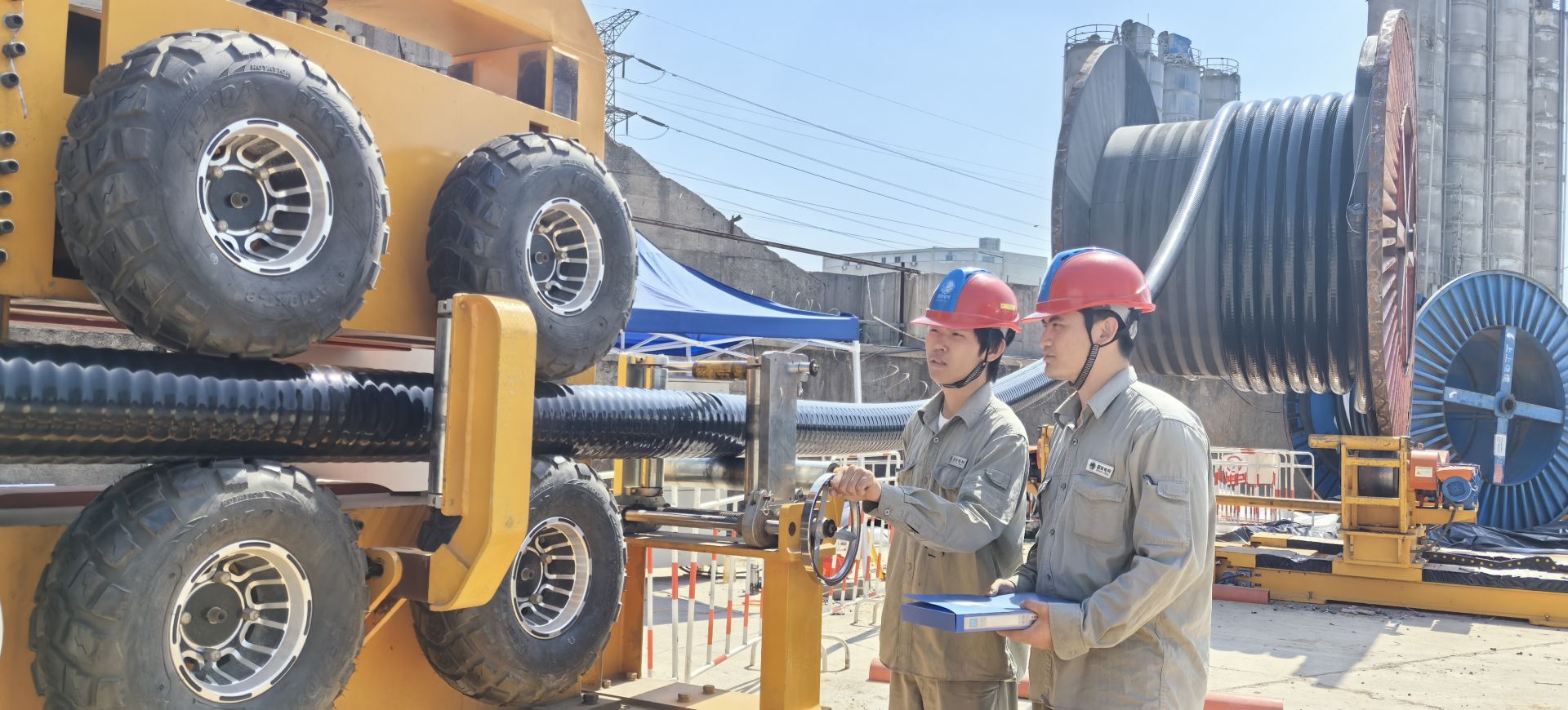 该公司采用全新高压电缆工法 配合全自动电缆展放装置进行电缆敷设工作。