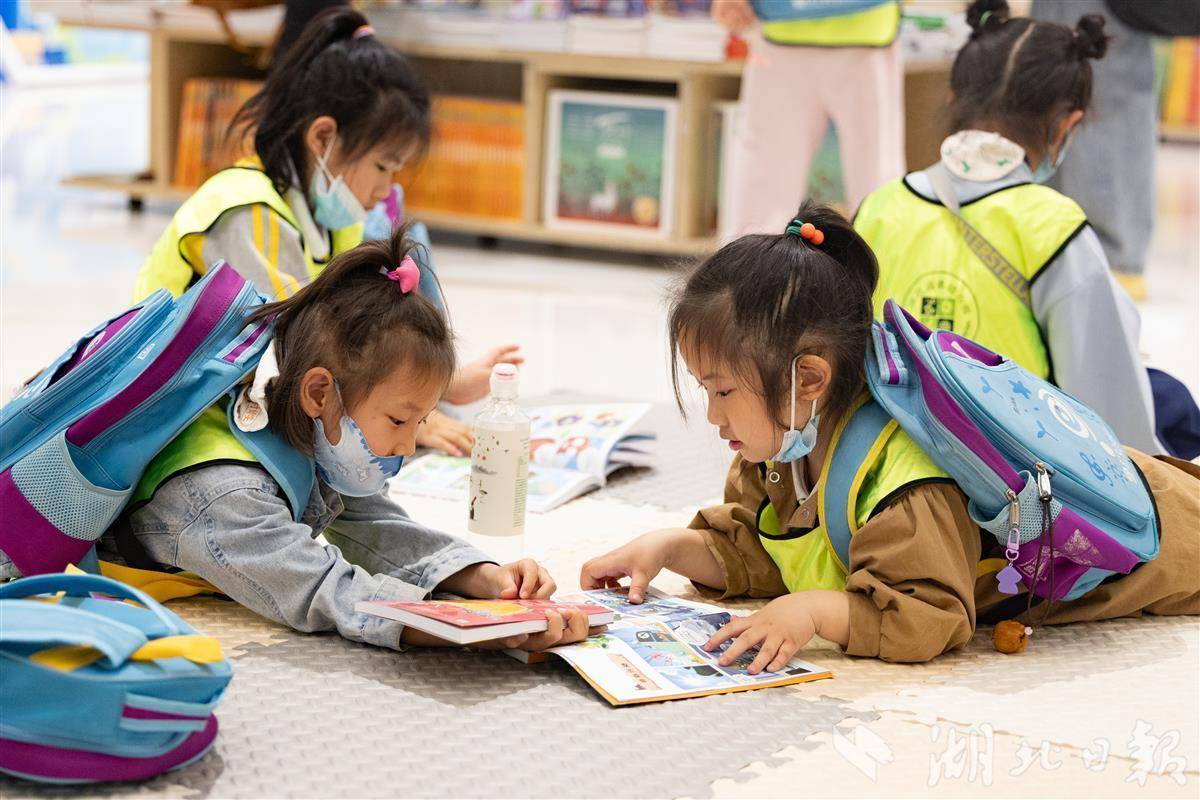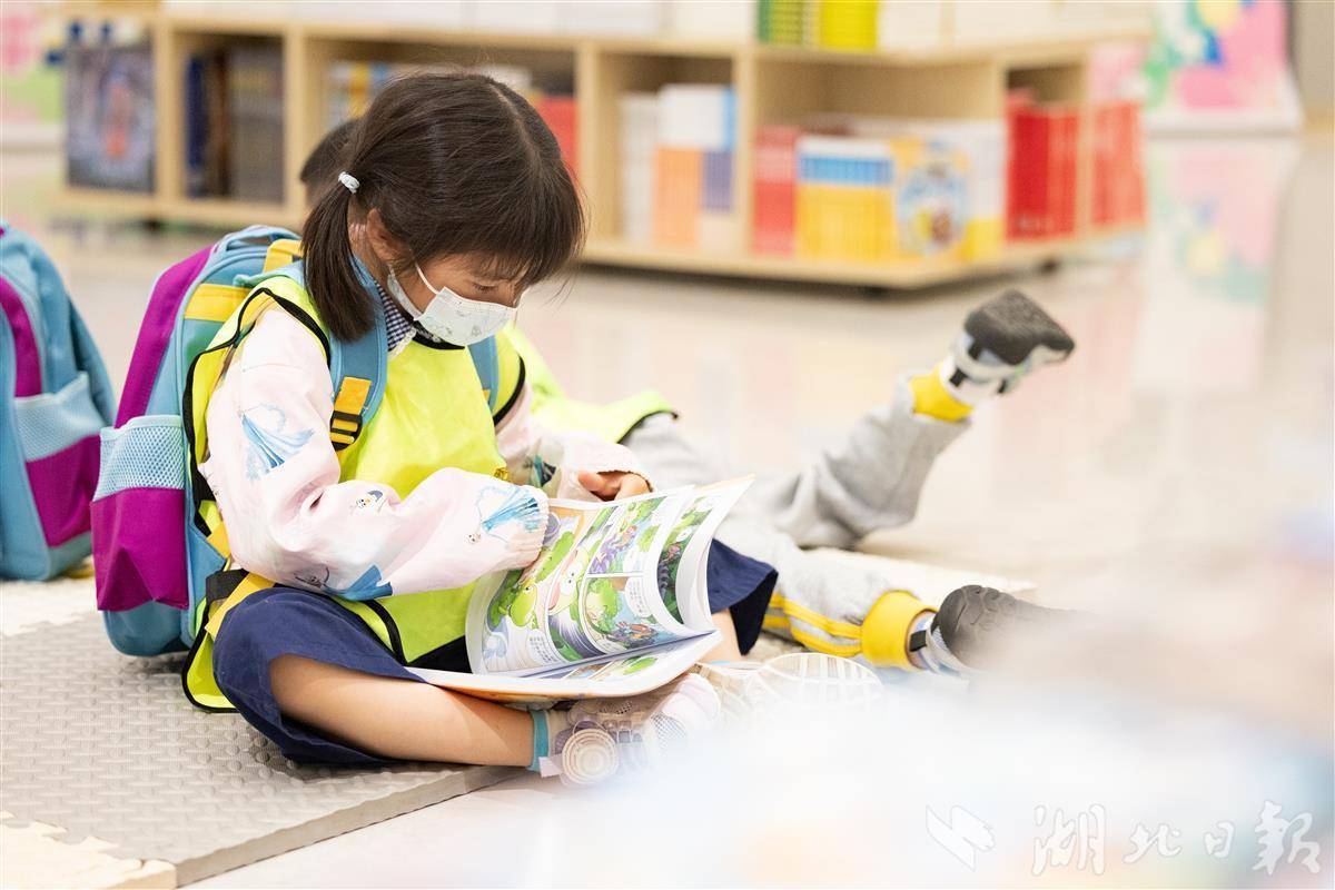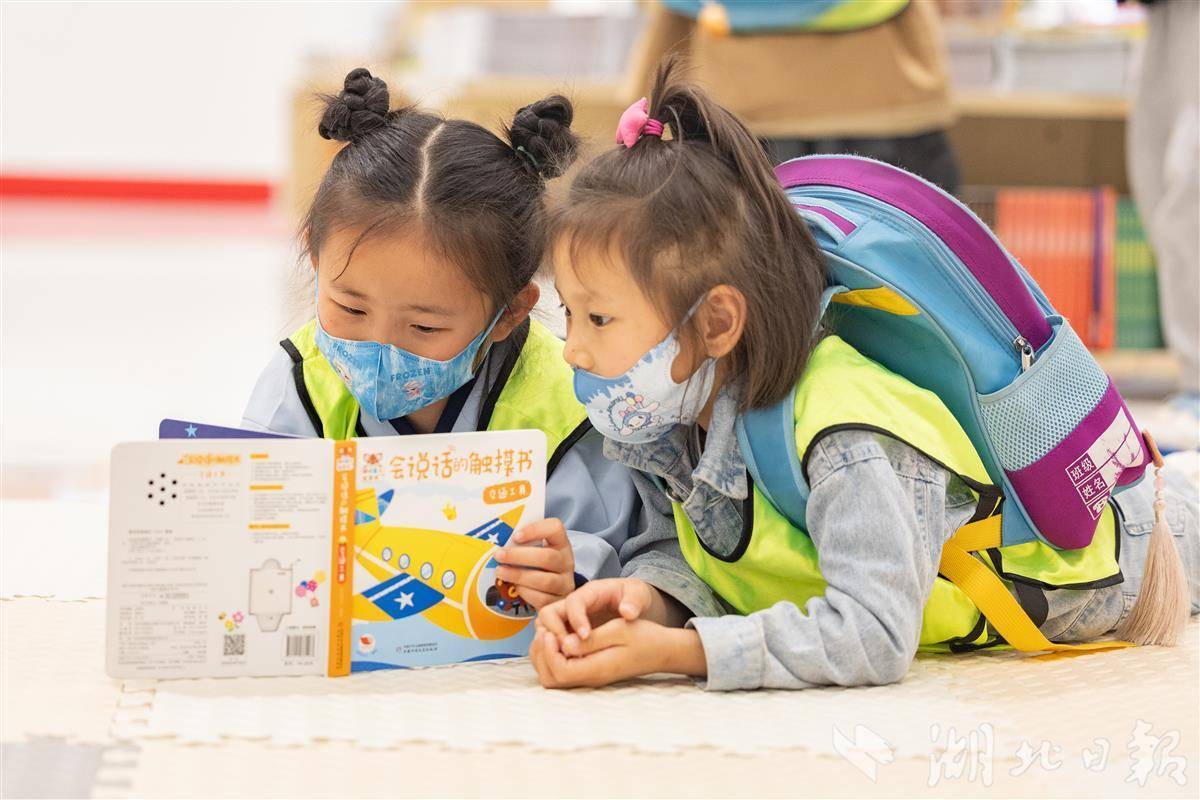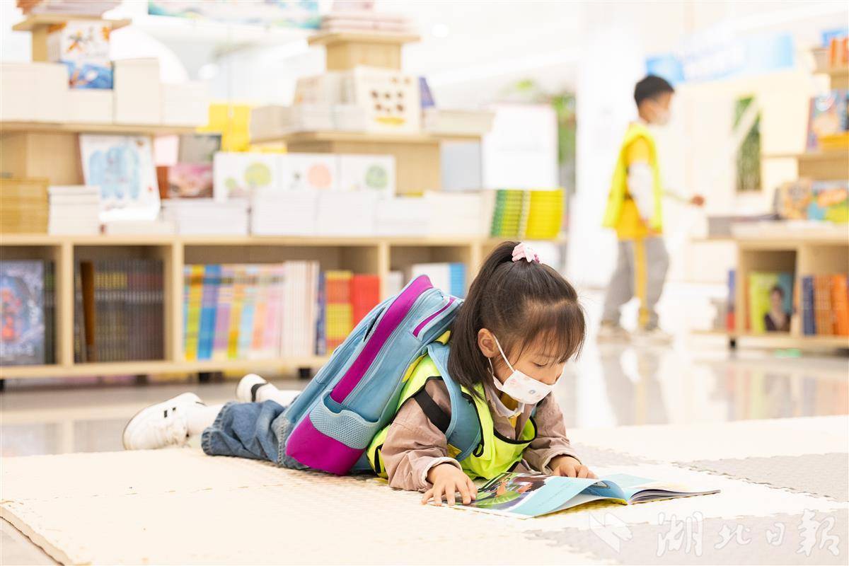 小朋友们在第九届武汉淘书节武汉中心书城主展场的“儿童友好”特色展区阅读儿童读物。