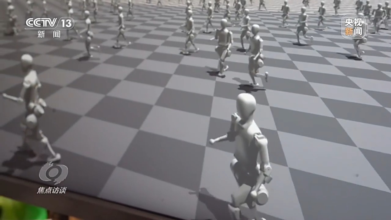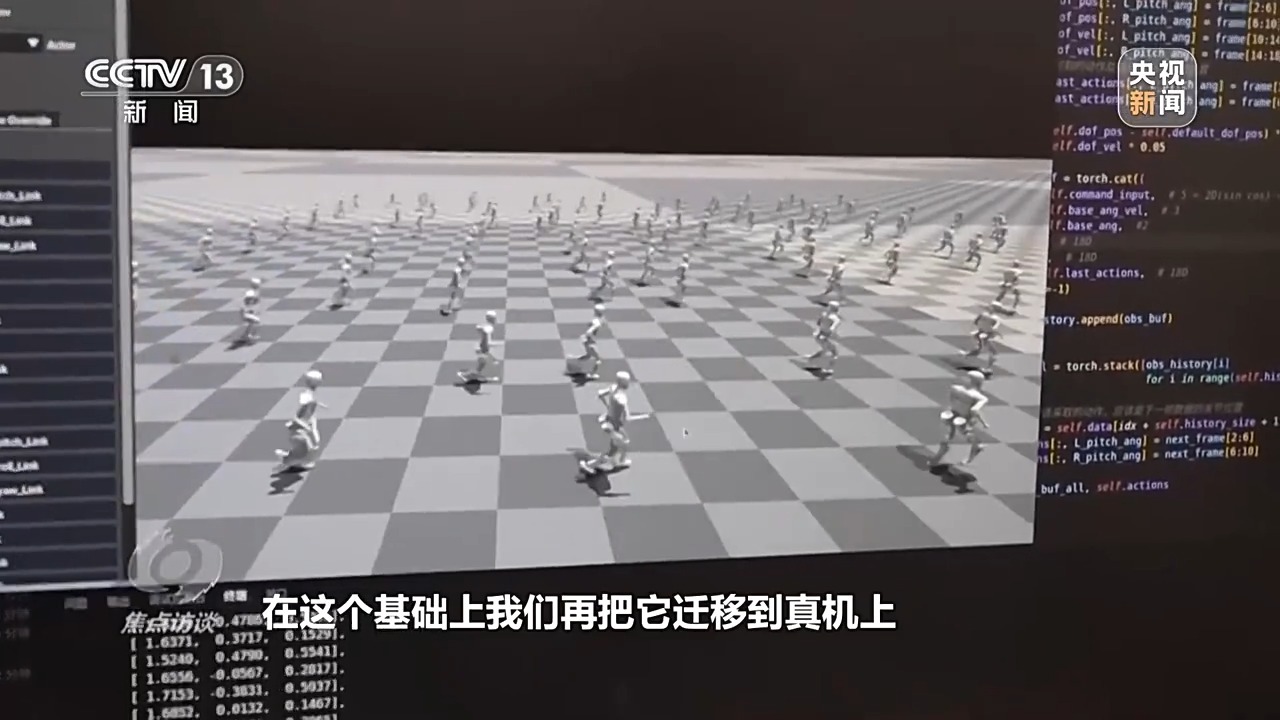 松延动力董事长 姜哲源:经过几万次的训练之后,机器人最后在仿真里边跑起来,跑得很好,然后在这个基础上我们再把它迁移到真机上。