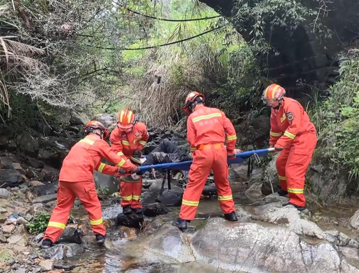郴州消防工作人员介绍,桂东县消防大队救援人员现场了解得知,该男子前一晚骑摩托车时不慎坠落到河沟中,河沟距离路边约5米高。消防救援人员先是将受伤男子小心翼翼抬上担架,然后通过轮流接力,尽量保持担架平稳,逐步将男子抬至公路上。现该男子已送往医院救治,暂无生命危险。