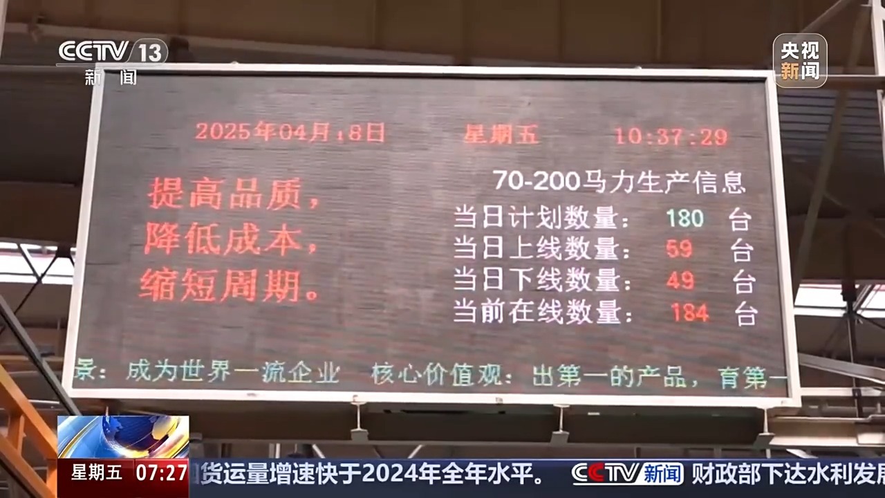 在同一条装配线上,220马力动力换向机型与180马力机械换挡机型正在进行“并肩”组装。智能工厂通过制造执行系统与智能物流协同,实现了多种型号、不同马力的混线生产。