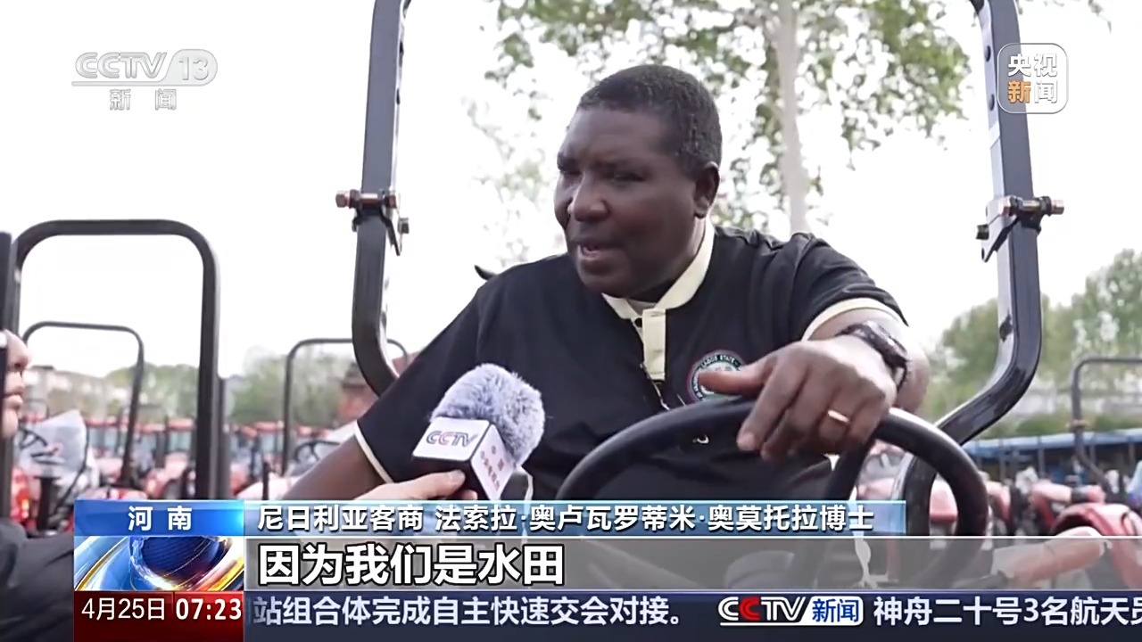 尼日利亚客商 法索拉·奥卢瓦罗蒂米·奥莫托拉博士:因为我们是水田,所以我们需要一个拖拉机,整体的重量是要轻一些,而且底盘要低一点。