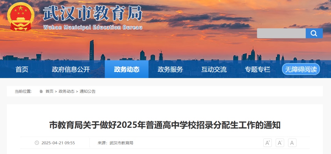 4月21日,武汉市教育局发布《市教育局关于做好2025年普通高中学校招录分配生工作的通知》。具体如下: