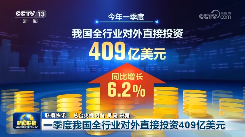 商务部数据显示,今年一季度,我国全行业对外直接投资409亿美元,同比增长6.2%,其中对外非金融类直接投资356.8亿美元,增长4.4%。我国对外承包工程新签合同额586.7亿美元,增长26%。