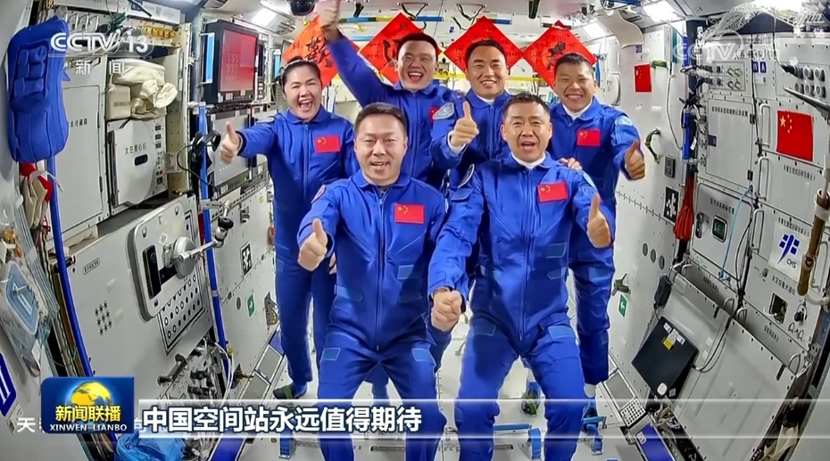 25日1时17分,在轨执行任务的神舟十九号航天员蔡旭哲、宋令东、王浩泽打开“家门”,欢迎远道而来的神舟二十号航天员陈冬、陈中瑞、王杰入驻中国空间站,这是中国航天史上第6次“太空会师”。