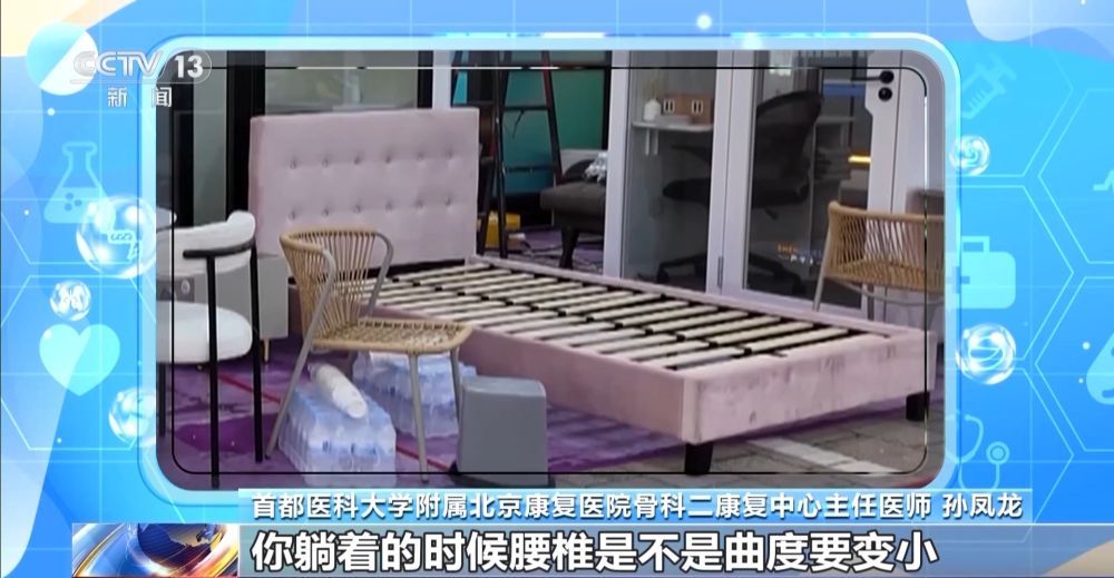 首都医科大学附属北京康复医院骨科二康复中心主任医师 孙凤龙:这种说法是不对的。如果是一个非常硬的硬板床,你躺着的时候腰椎是不是曲度要变小,颈椎曲度是不是要变小。那么在这个时候,会让我们的肌肉去做更多的工作,去拮抗这种形变能力,反而会加重你的腰椎的负荷,会导致你的腰椎退变进一步加剧。