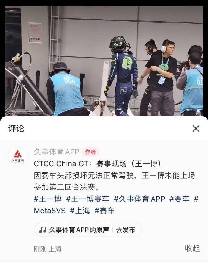刚刚,正在上海举行的CCTC China GT中国超级跑车锦标赛上传来消息,因赛车头部损坏无法正常驾驶,王一博未能上场参加第二回合决赛。